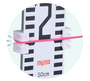 MYZOX(マイゾックス)ゴム水糸固定アダプター 水糸ストップは本体を基準位置にスライド固定が可能で、 ゴム水糸を引っかけるだけです。