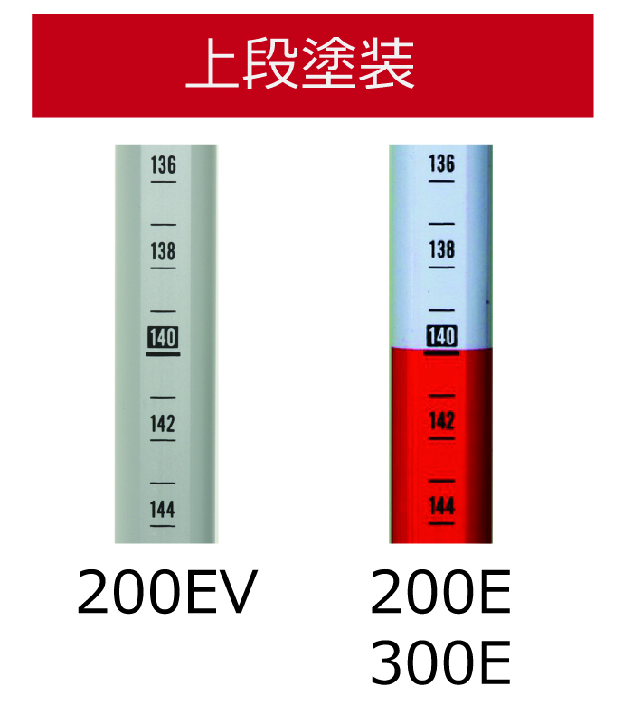 下段:20cmピッチ 赤白塗装 上段: 1cm目盛り 赤白塗装 |